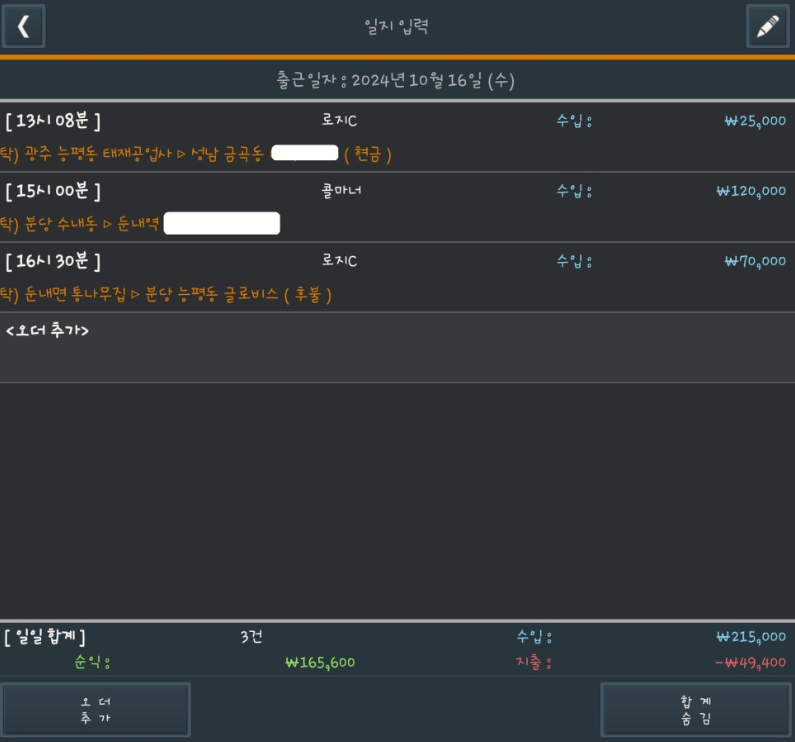 통행료가 포함된 오더로 추가 비용이 발생하지 않았습니다.